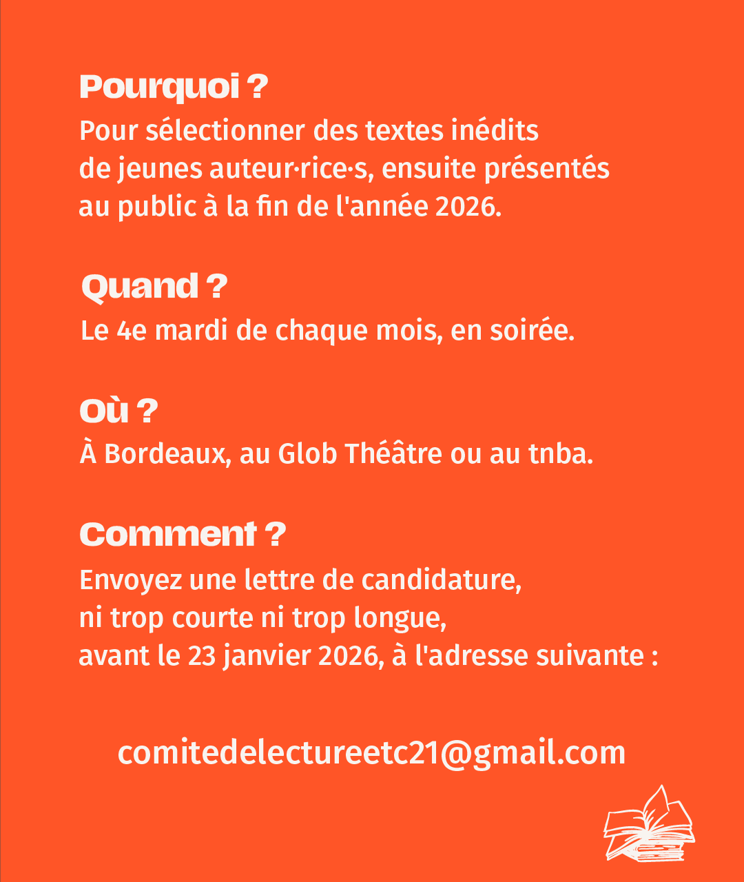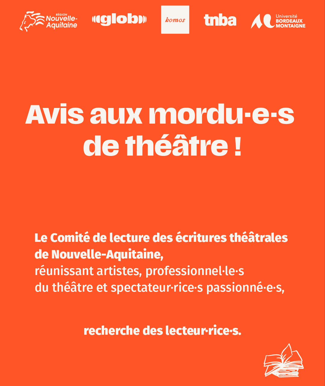 Avis au mordu·e·s de théâtre – Comité de lecture 17 Déc 202517 Déc 2025globadmin • Actualités, Non classé